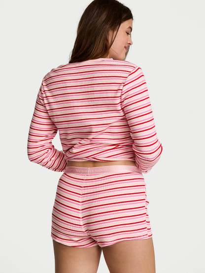 This cozy set fits close to the body and comes in supersoft cotton with a hint of stretch. Features a henley top plus cute shorts in a variety of colors and prints.