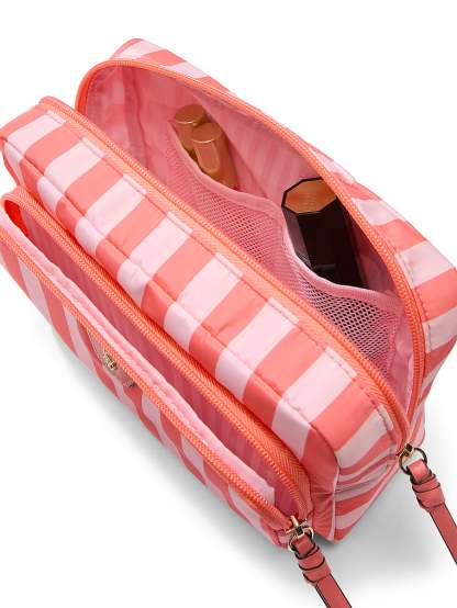 Go glam. This convenient and stylish travel-ready bag fits all your makeup essentials, whether packed in your carry-on or tucked in your work tote.