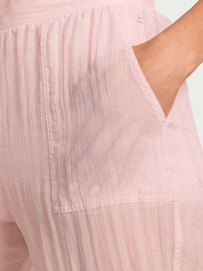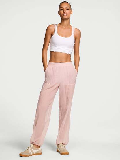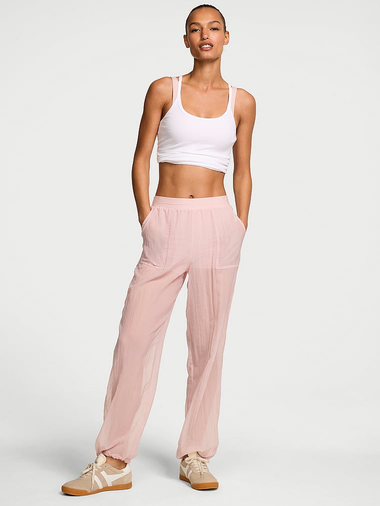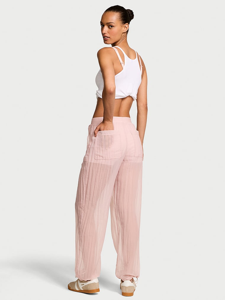 Take on the sheer-style trend—but make it sporty. This fashion-forward, wide-leg pair is designed in semi-sheer, lightweight fabric with an easy elastic waist and handy pockets front and back. Built-in shorts provide just-right coverage and comfort.